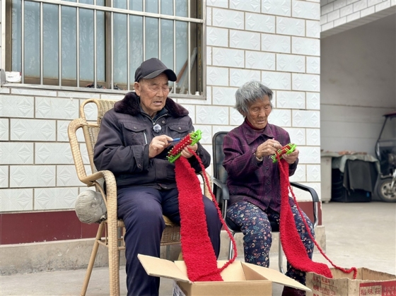3月29日,91岁的赵中福和老伴张娥梅在家里织围巾。 本报全媒体记者 赵阿娜 摄 本报全媒体记者 李琳 赵阿娜 你可曾想,十八年如一日,能坚持做一件什么事?你可曾动容,一针一线里,藏着怎样滚烫的牵挂? 3月29日,春日暖阳洒在安阳市龙安区龙泉镇西洪沟村的一个农家小院里,91岁的赵中福和老伴张娥梅像往常一样,坐在板凳上织围巾,指尖翻飞间,一条红围巾渐渐成形。 这一织,就是十八年。上万条手工围巾跨越山海,抵达祖国多处边关哨所。 “我们没啥大本事,围巾也不贵