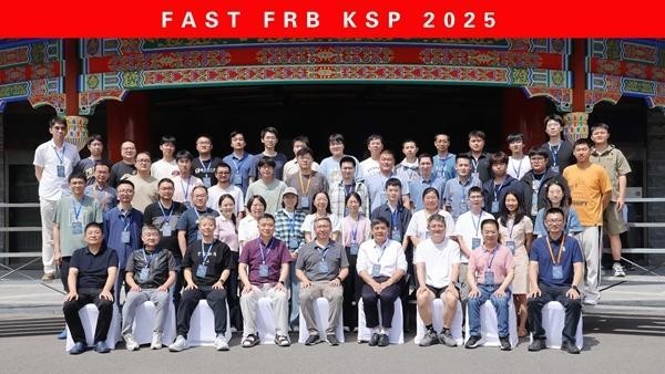2025年夏天,“快速射电暴及其天体物理”研讨会在北京师范大学召开。会议期间,FAST优先和重大项目团队的部分参会人员合影。朱炜玮(前排左五)、张冰(前排左四)、李晔(二排右七)、杨轩(二排右五)、杨元培(二排左二)在现场。受访者供图