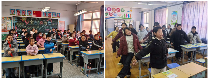 “用自己的身体做乐器,噼里啪啦地打出快乐的节拍!”在《桑巴leilei》的课堂上,孩子们跟着老师的示范,用手掌、地板和课桌合奏出一曲活力节奏。《唢呐配喇叭》中,孩子们鼓起圆圆的小腮帮,模仿“嘀嘀哒哒”的乐声,一张张小脸宛如一排排快乐的“小喇叭”。